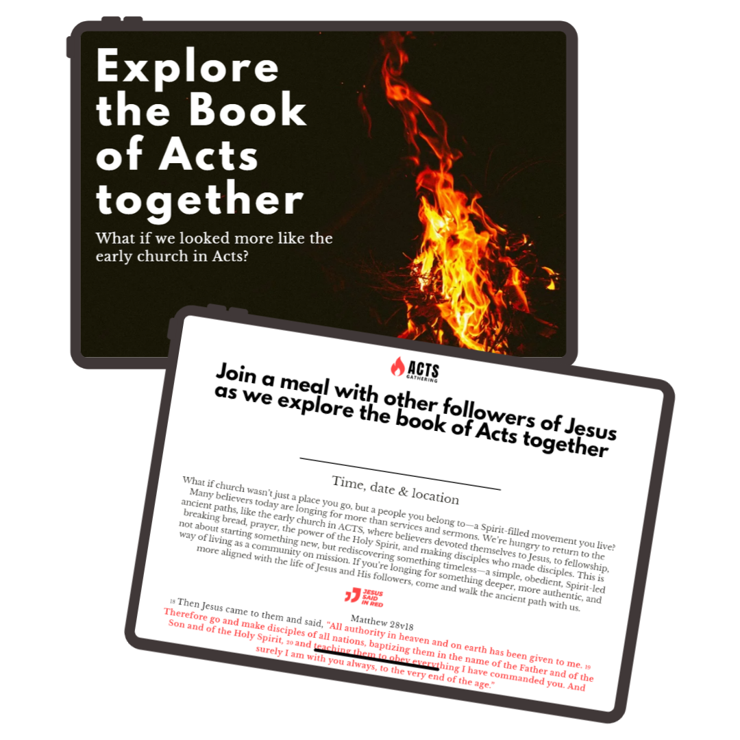 We’re gathering a committed group of Christians (Around 40) who want to rediscover the simple, powerful way of Jesus from the book of ACTS—devoting ourselves to prayer, fellowship, the Holy Spirit, and making disciples who make disciples.